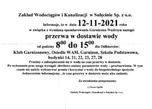 Komunikat Zakład Wodociągów i Kanalizacji w Sulęcinie Sp. z o. o .