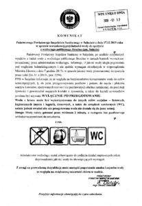 KOMUNIKAT Państwowego Powiatowego Inspektora Sanitarnego w Sulęcinie z dnia 17-12-.2019 roku – Dotyczy miejscowości Brzeźno.