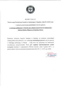 KOMUNIKAT Państwowego Powiatowego Inspektora Sanitarnego w Sulęcinie z dnia 29.10.2018 roku