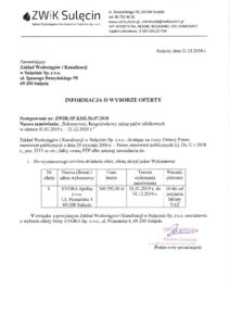 2018-12-31 Informacja o wyborze wykonawcy – „Sukcesywny, bezgotówkowy zakup paliw silnikowych”