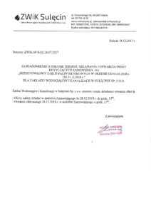 ZAWIADOMIENIE O ZMIANIE TERMINU SKŁADANIA I OTWARCIA OFERT -ZWIK.SP.KDZ.26.2017